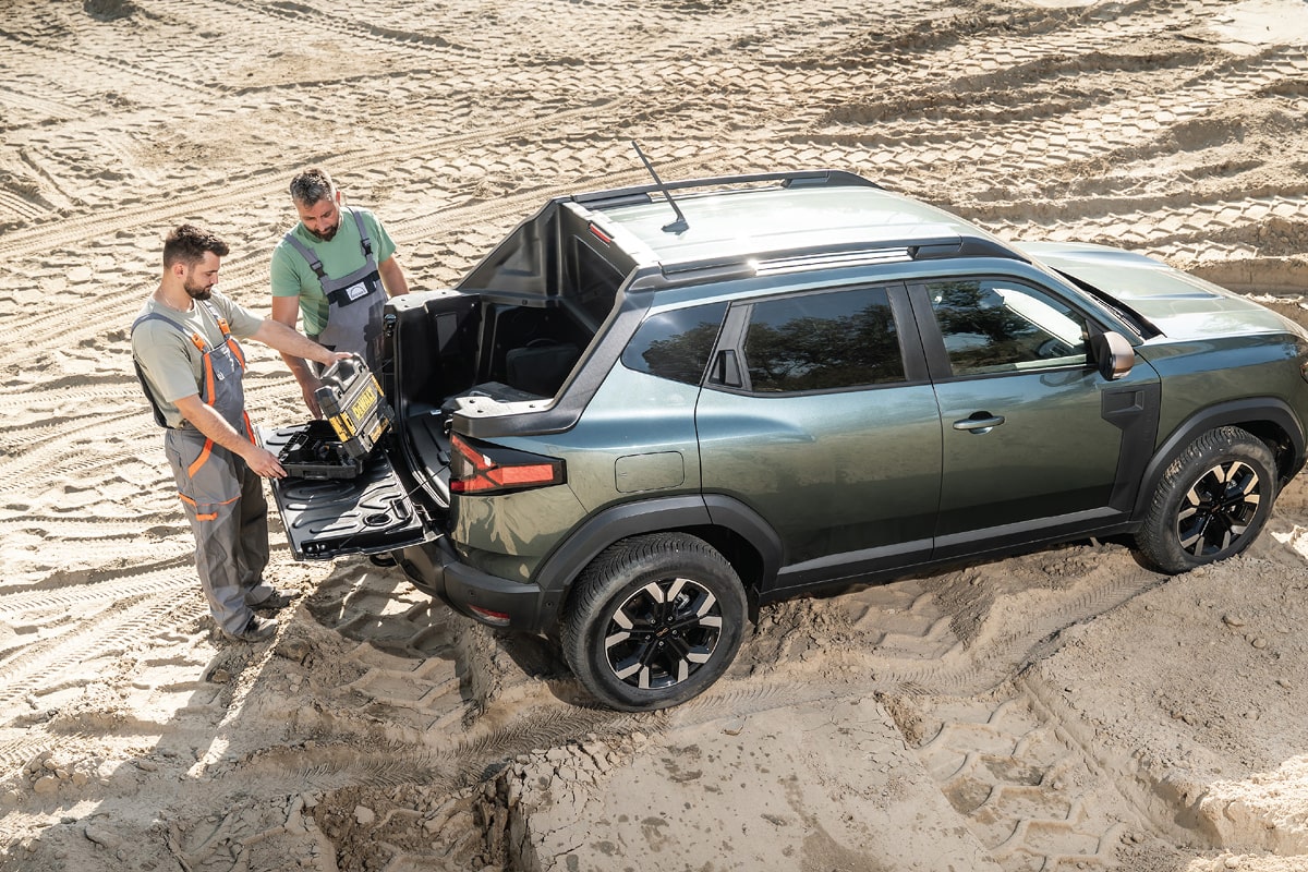 Certes, la benne n’a rien à voir avec celle d’un pick-up traditionnel. Avec un mètre de large et un mètre de long, elle est taillée pour des matériaux, des outils ou du transport léger plutôt que pour des palettes entières. Dacia a ajouté deux rails latéraux avec quatre crochets d’arrimage, histoire de sécuriser tout ce que vous y chargez. C’est suffisant pour un usage mixte : artisans, bricoleurs ou amateurs de loisirs outdoor y trouveront leur compte, sans sacrifier l’espace arrière pour les passagers.