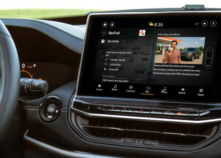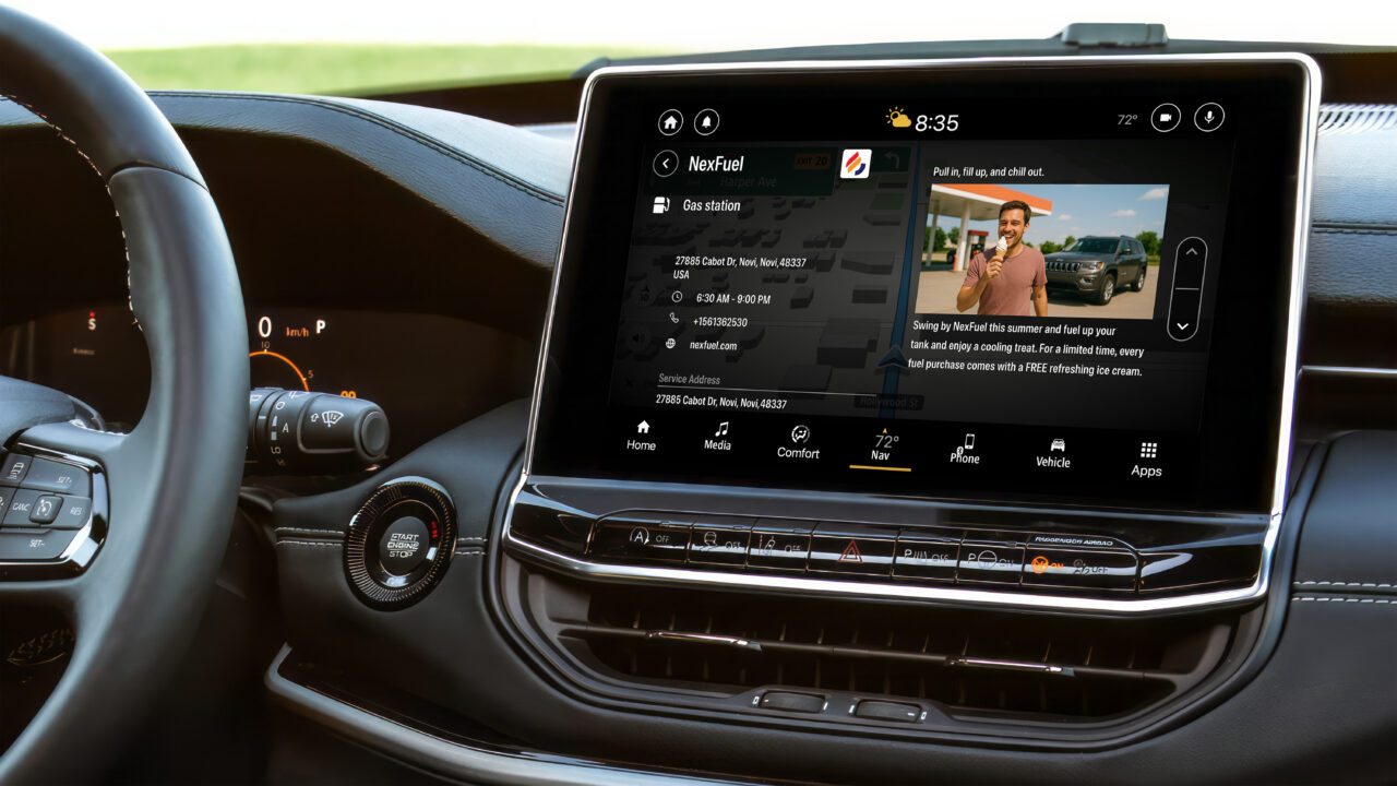 La plateforme 4screen sera disponible dans certains modèles FIAT, Jeep® et Ram équipés des systèmes Uconnect® 4 ou Uconnect® 5. Elle permettra aux conducteurs d’accéder directement depuis l’écran d’infodivertissement à des services de proximité, des offres et des points d’intérêt. Le déploiement s’étendra par la suite à d’autres marques de Stellantis.