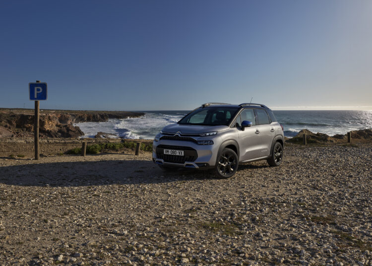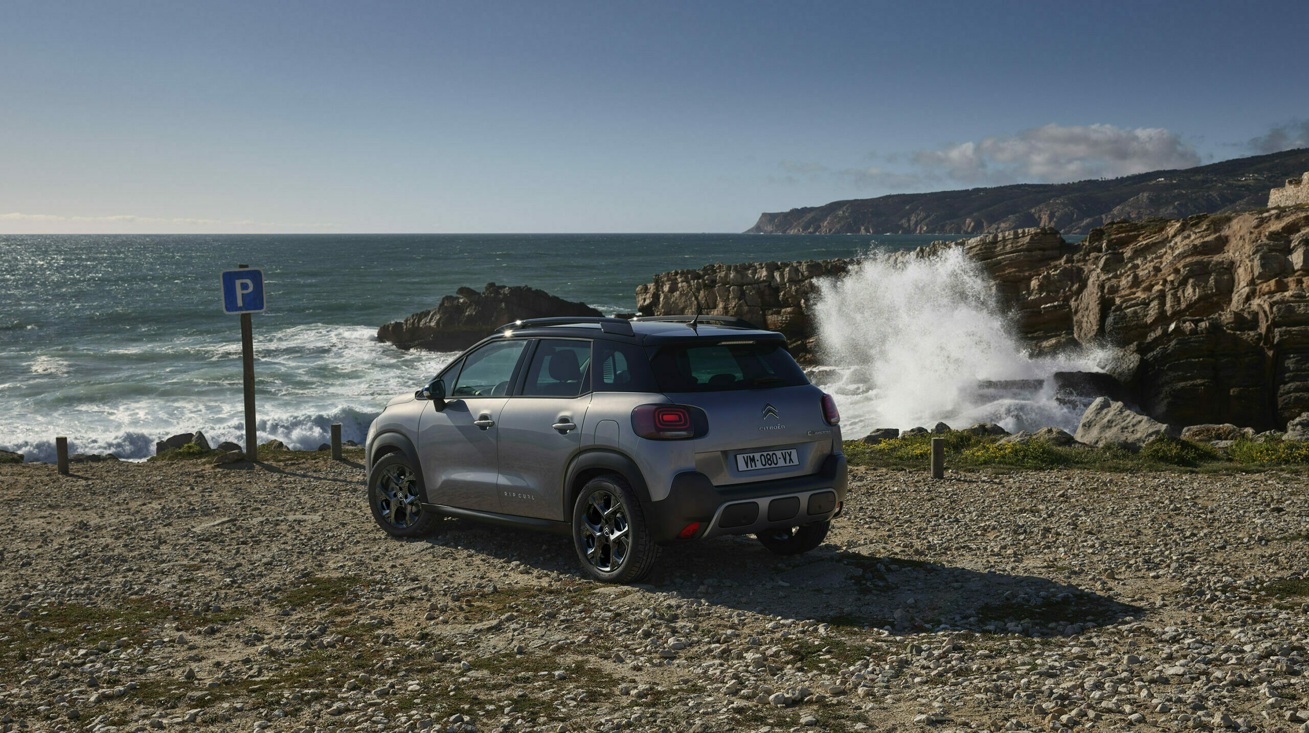 Cette toute dernière version du C3 Aircross reprend bien-sûr les éléments esthétiques de ses aînés au look de baroudeur. (garde au sol surélevée et grandes roues, sabots avant et arrière, grille à motif géométrique, protections bas de caisse à 360° …) Et sa face avant porte la signature Citroën actuelle à double chevrons chromés se prolongeant jusqu’aux projecteurs à leds.
