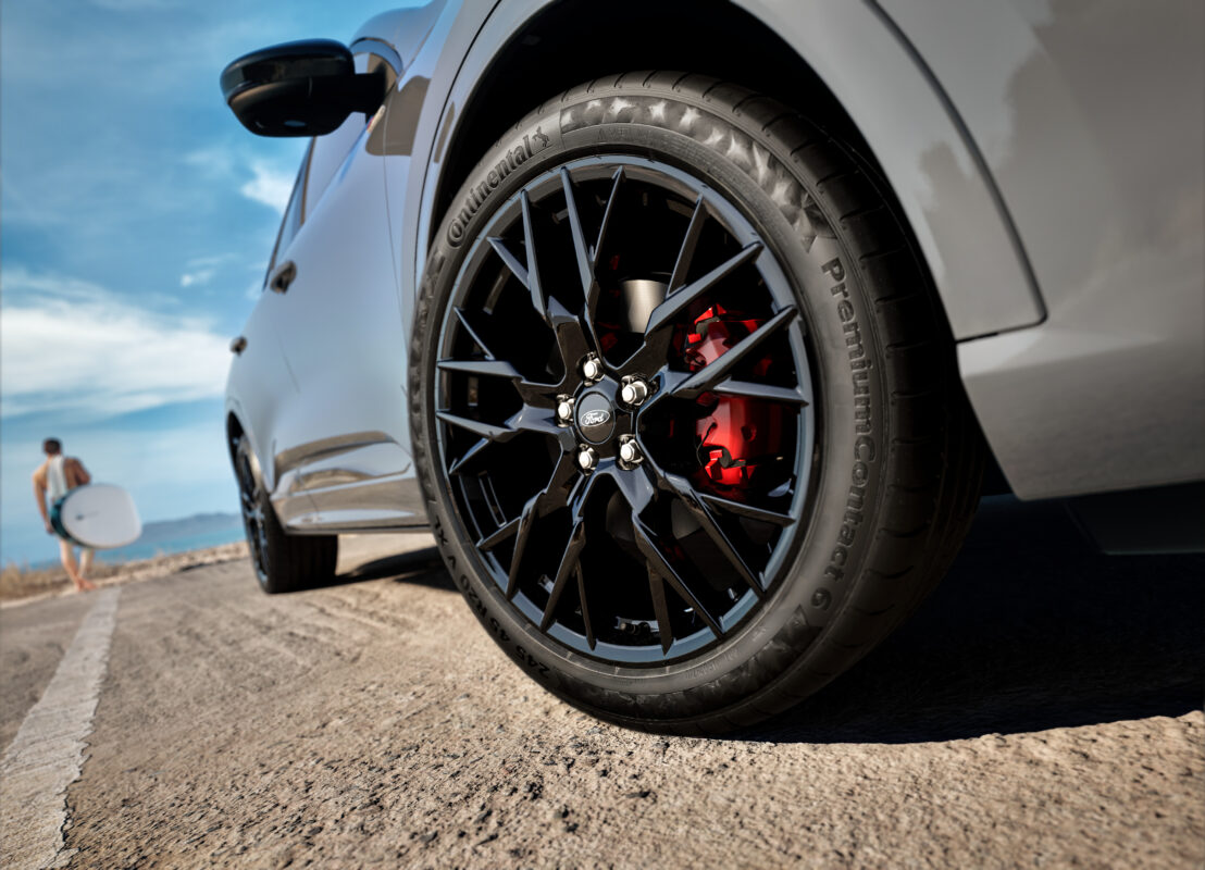 Et de préciser que les détails noir brillant comprennent des jantes en alliage de 20 pouces Ford Performance qui affirment un style statutaire et sportif tout en complétant le design élégant et musclé du Kuga. Il créé un effet de contraste avec les étriers de frein rouges.