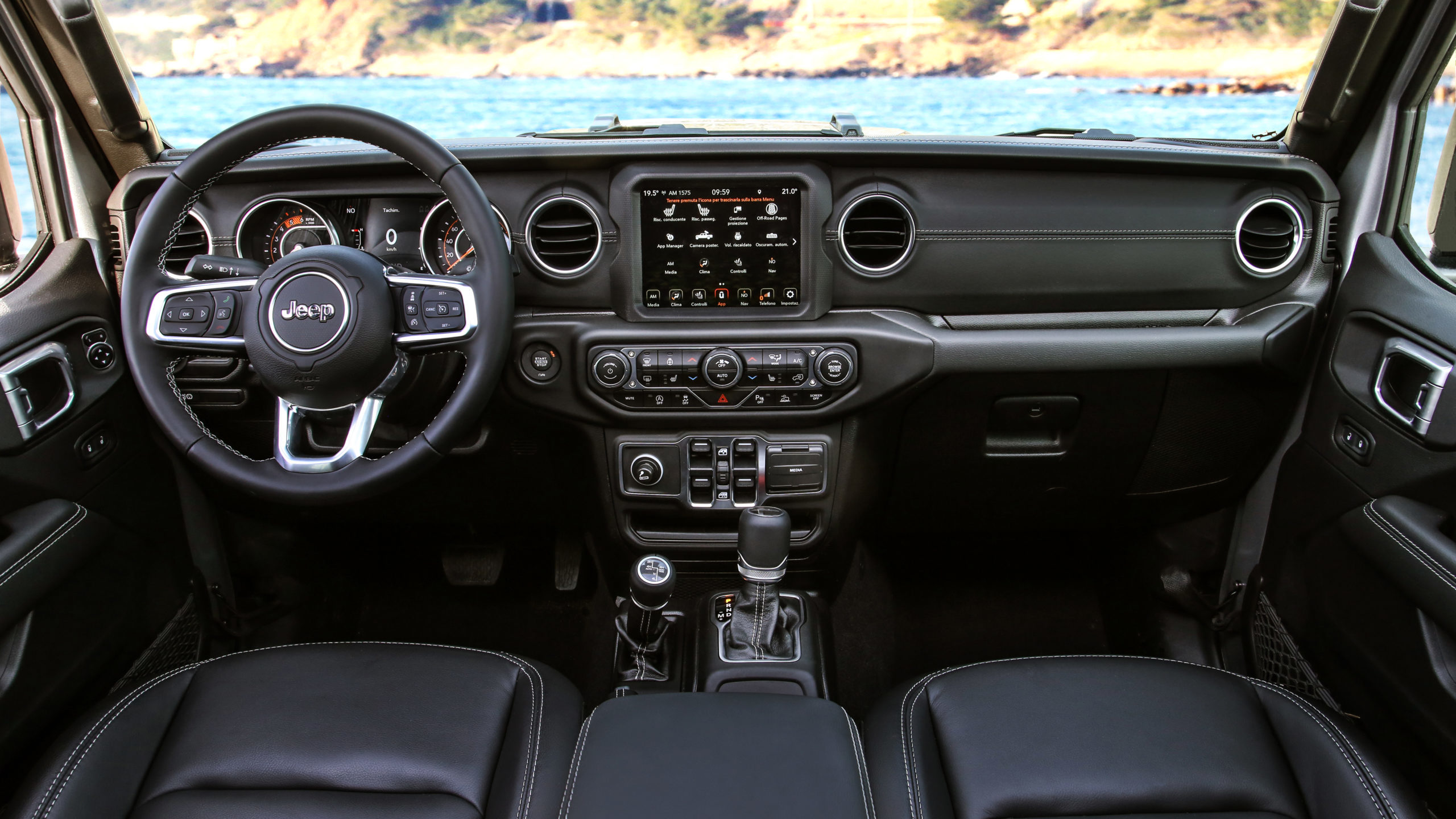 5,60 m de long, 3,48 m d’empattement, un plateau de chargement d’1,53 m de long pour 1,44 m de large, les mensurations du nouveau Jeep Gladiator en imposent. C’est le genre de « truck » qui ne passera pas inaperçu, au risque d’en agacer certains et de tenter ceux qui trouveront là un véritable outil de travail. Car au delà des équipements de sécurité active et passive comme entre autres la caméra de recul, l’aide au stationnement avant et arrière (pratique eu égard à la taille de l’engin!), le contrôle électronique de la stabilité (ESC) avec atténuation électronique du roulis, le Gladiator, dispose d’une caméra avant intégrée à la calandre. Elle permet de détecter facilement les éventuels obstacles, que ce soit en tout-terrain ou en ville. Entièrement lavable, ce nouveau venu dispose également d’un niveau d’équipement complet et notamment du système Uconnect avec écran tactile de 8,4’’ d’un tableau de bord avec un écran TFT de 7’’, un système audio Alpine Premium à 8 haut-parleurs avec un subwoofer arrière, un amplificateur à 12 canaux de 552 W et un haut-parleur sans fil Bluetooth portable.