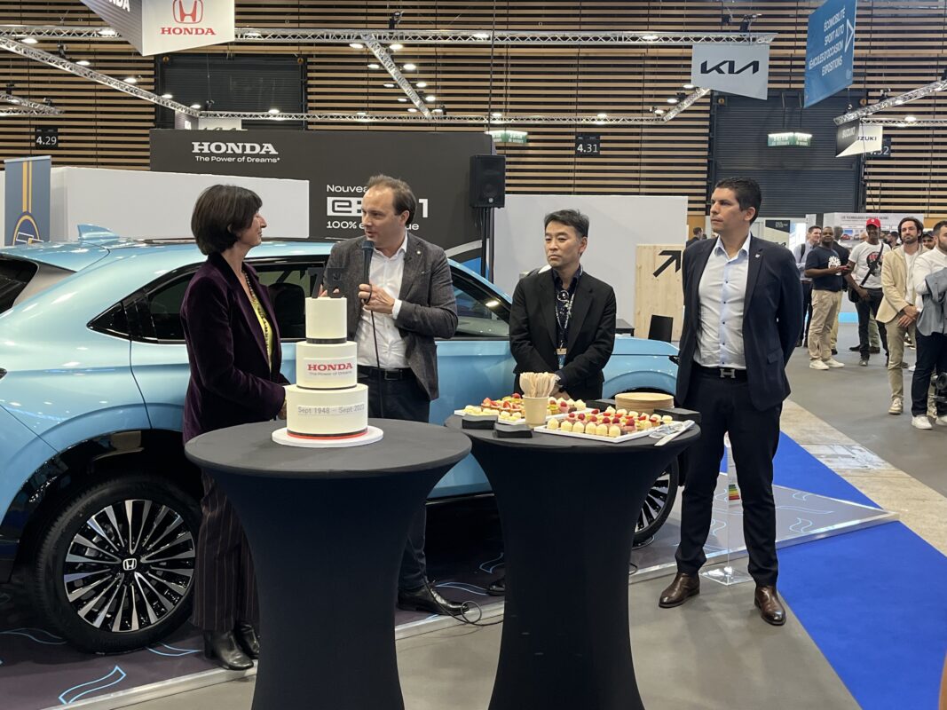Débutons par un anniversaire. Celui des 75 ans de la marque Honda fêté dignement devant leur nouveau modèle le e:Ny1, un modèle 100 % électrique conçu sur une toute nouvelle base châssis, en présence des sommités de la marque venues spécialement du Japon. Sur le stand Honda, c’est une gamme renouvelée autour de trois modèles phares : le ZR-V, un SUV compact à l’ADN sportif, et le CR-V avec ses motorisations hybrides e:HEV et e:PHEV.