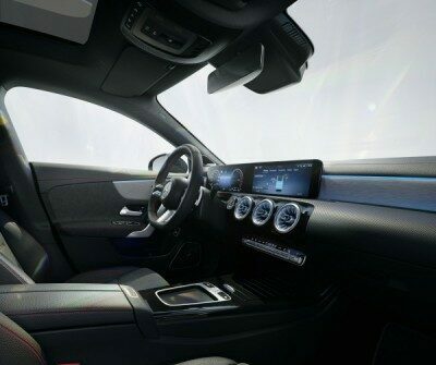 Le clou de l’habitacle est le double écran. Il comprend désormais un écran de 7 pouces et un écran de 10,25 pouces de série. Deux écrans de 10,25 pouces avec un aspect grand écran sont disponibles en option. Ils offrent une expérience high-tech globale et créent une architecture spatiale exceptionnellement ouverte. Le volant de la génération actuelle est garni de cuir Nappa de série. Les nouveaux éléments décoratifs en carbone foncé, en tilleul brun à pores ouverts ou en microfibre MICROCUT brune (AMG Line uniquement) rehaussent encore l’intérieur. Le volant chauffant est également disponible pour la première fois sur AMG line.