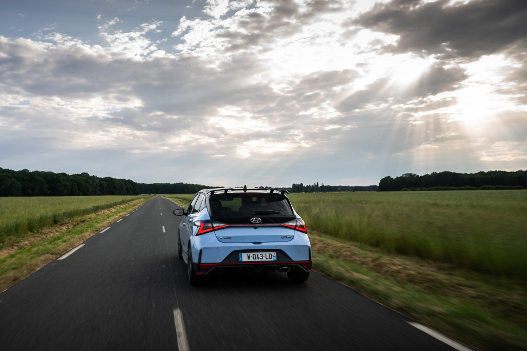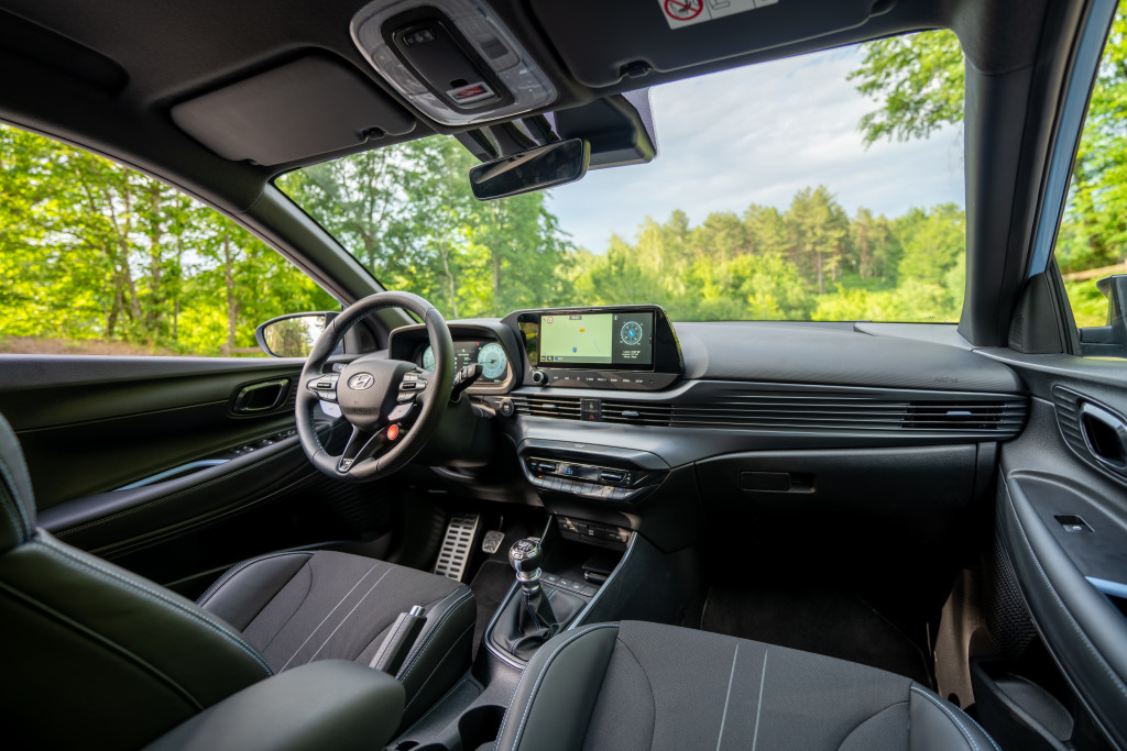 204 chevaux, 275 Nm de couple un rapport poids-puissance de 171 chevaux à la tonne ; voilà de quoi donner des ailes. Et rappeler que la marque coréenne ne fait pas que de la figuration en compétition. La fiche technique de cette Hyundai i20N s’accompagne d’une série d’équipements comme des jantes de 18 pouces, de grosses prises d’air dans le bouclier avant, un becquet arrière qui ne laissent aucun doute sur les prétentions de ce véhicule. Si le ton est donné à l’extérieur, l’intérieur n’est pas en reste puisque Hyundai l’habille de sièges sport avec appuie-tête intégré, pédalier métallique…. Ambiance.