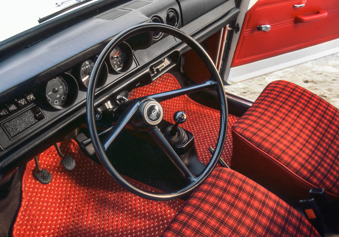 Le moteur de 66 kW (90 ch) propulsait le coupé à 170 km/h, tandis qu’un châssis sportif offrait une sécurité supplémentaire. Avec son équipement sportif et ses excellentes performances de conduite, la Rallye-Kadett offrait ainsi une base idéale pour le sport automobile populaire. D’ailleurs, le capot noir mat n’était pas un gadget esthétique, mais empêchait le conducteur d’être ébloui par la lumière du soleil, une expérience qui trouvait son origine dans le rallye de l’époque. La peinture spéciale est rapidement devenue la marque de fabrique de la Rallye-Kadett.