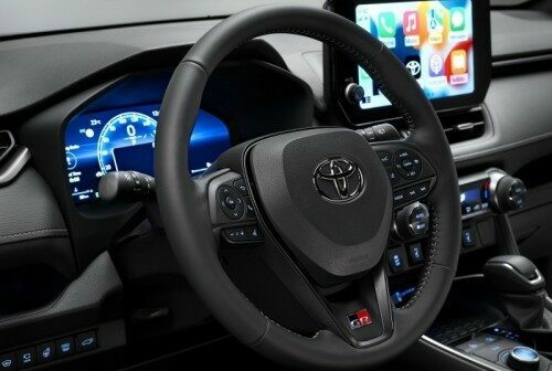 L’équipement haut de gamme du Rav4 GR Sport comprend le réglage électrique des sièges avant et une nouvelle version du moniteur de vision panoramique Toyota. Ce dernier propose notamment une vue sous la voiture pour permettre au conducteur d’examiner la surface du terrain et de localiser précisément les roues lors des manœuvres à basse vitesse. Une assistance supplémentaire est fournie par une nouvelle caméra de recul digitale dont les images sont de meilleure qualité que celles du système analogique précédent. De nombreuses aides à la conduite et entre autres un système multimédia de dernière génération complètent l’offre. Ce dernier est équipé d’un écran tactile de 10,5 pouces. Monté au centre du tableau de bord et conçu pour s’harmoniser parfaitement avec le design intérieur de la voiture, ce moniteur de couleur noire offre des graphismes haute définition pour une netteté et une lisibilité idéale dans toutes les conditions d’éclairage. Un menu avec des icônes est affiché en permanence du côté conducteur. Les utilisateurs peuvent connecter leur smartphone ou leur tablette au système, avec ou sans fil s’ils utilisent Apple CarPlay®, ou via une liaison filaire pour Android Auto®. Le pack multimédia comprend un système de navigation qui utilise des informations sur le trafic mises à jour en temps réel pour une planification d’itinéraire précise et efficace. Un système de navigation intégré au véhicule est également disponible en option lorsqu’aucune connexion au cloud n’est possible. Ce système offre des fonctions supplémentaires comme la reconnaissance des panneaux routiers, des informations météorologiques locales et les alertes à destination du conducteur lorsqu’il approche des zones à faibles émissions (ZFE). Tarifs : environ 55 000 euros.