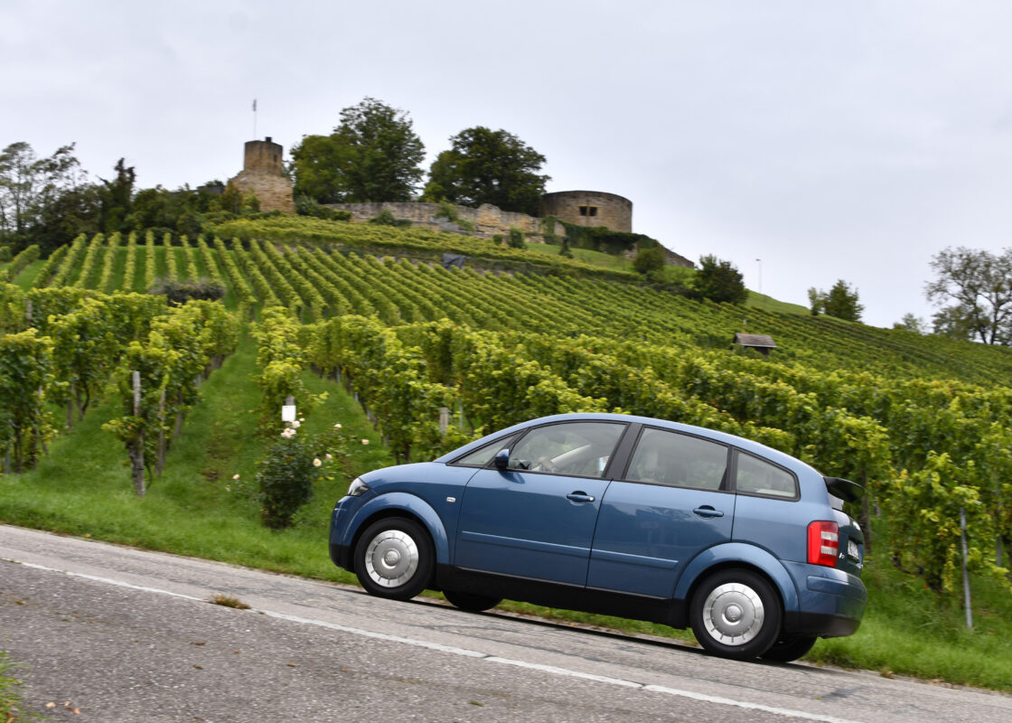 The Audi A2 was launched in 2000 – 25 years ago. The picture shows a side view of the Audi A2 1.2 TDI as the world’s first four-door three-liter car, rolling shot.