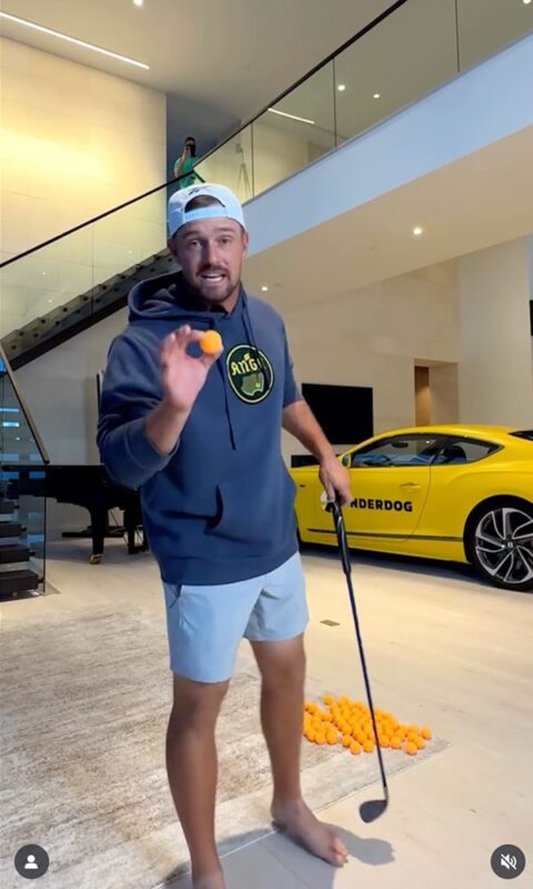 Un pro du golf qui transforme son salon en terrain de practice et promet une Bentley Continental à la clé, ça mérite votre attention.