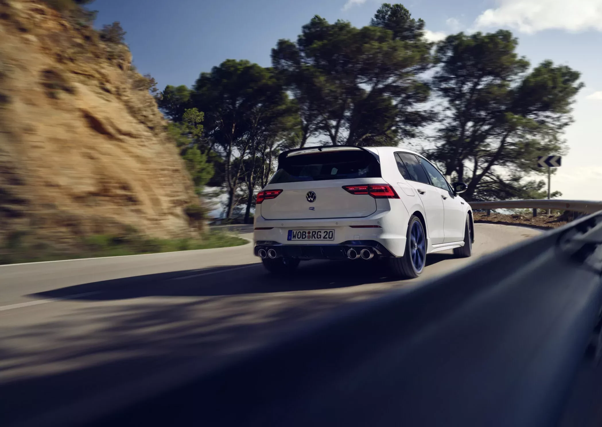 La Golf R « 20 ans » est équipée de série du pack « R-Performance », déjà présent sur la Golf 8 R (comme le R-Performance Torque Vectoring en combinaison avec le gestionnaire de comportement dynamique et deux profils de conduite supplémentaires « Special » et « Drift »). Ce nouveau modèle est doté d’équipements au design exclusif.