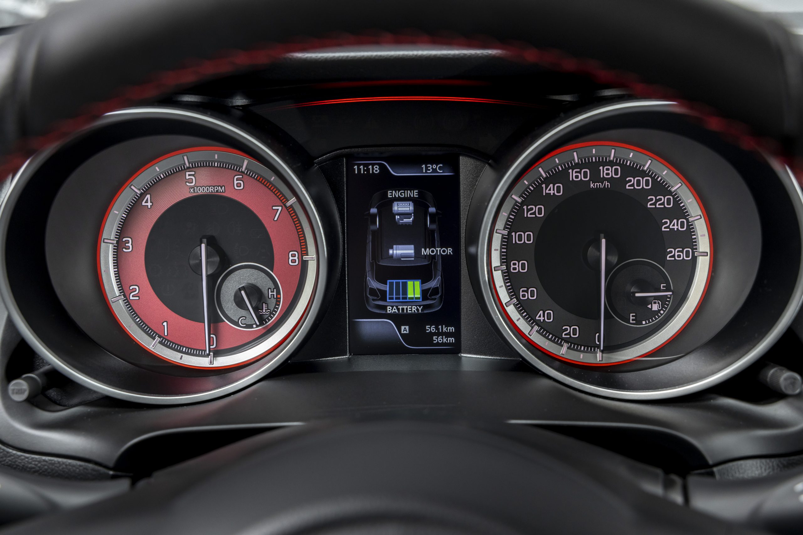 Swift Sport hybride : 3,89m x 1,73 m. Coffre : de 265 à 947 litres. Conso mixte : 5,6 litres. CO2 : 127g. Poids : 1020 kg. Hybridation légère (un alterno-démarreur, une batterie lithiulm-ion de 48V, un convertisseur 48V-12V pour la batterie principale) L’alterno-démarreur récupère l’énergie au freinage et lors des ralentissements et la stocke dans la baterie dédiée avant de l’utiliser comme assistance au moteur thermique et ainsi réduire la consommation.