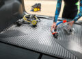 Si votre véhicule est à traction avant (la plupart des voitures le sont), placez l’équipement sous les roues avant. S’il y a plus d’une voiture à propulsion (comme la plupart des voitures de sport), placez-la sous les roues arrière. Une simple boîte en carton peut sauver la mise.