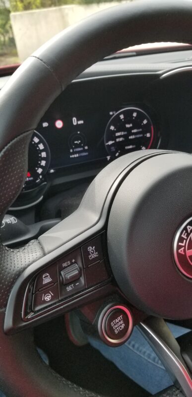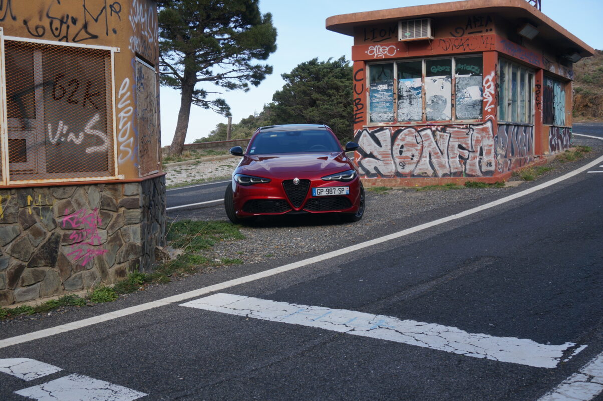 A commencer par les phares Full-LED Adaptive Matrix encadrant sa calandre « trilobo » qui fait indéniablement penser aux modèles du passé et rappelle aussi le tout nouveau Tonale, le SUV hybride signé Alfa. Comme nous l’avons fait remarquer lors de la précédente prise en mains, la marque premium a offert à la Giulia un inédit tableau de bord qui intègre le nouvel écran TFT 12,3″ entièrement numérique, grâce auquel il est possible d’accéder à l’ensemble des données du véhicule ainsi qu’aux paramètres liés à la conduite autonome. La nouvelle Giulia dispose également d’un ensemble complet d’ADAS (Advanced Driver Assistance Systems) assurant une conduite autonome de niveau 2. Cela signifie que le conducteur peut laisser le véhicule contrôler l’accélérateur, le frein et le volant dans certaines conditions via des systèmes électroniques nécessitant une surveillance constante de sa part. Mais bon, sur ce genre de modèle le plaisir se trouve ailleurs : les deux mains sur le volant et les index sur les palettes.