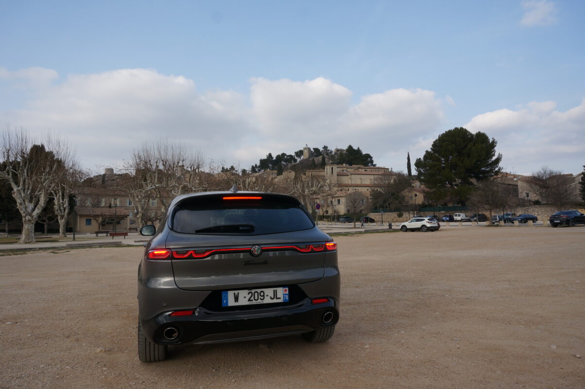 Sportif, le Tonale le deviendra dès qu’on aura tourné la mollette située à proximité de la commande de boîte en la positionnant sur « D ». Manoeuvre qui amènera la boîte auto à six rapports à faire preuve de moins d’inertie que lors d’une utilisation normale « A ou N » et apportera également plus de fermeté dans la direction et l’amortissement. Dans ce cas, le Tonale se montrera plus incisif, enroulant les courbes d’un parcours d’essai dans les Alpilles avec agilité, bien accroché au revêtement, et démontrera que les 280 chevaux de l’ensemble sont bien là. Et qu’on a entre les mains le volant d’une vraie Alfa. Le 0 à 100 km/h est d’ailleurs abattu en 6,2 secondes ce qui, compte tenu des plus de 1 800 kg de l’ensemble, n’est pas si mal.