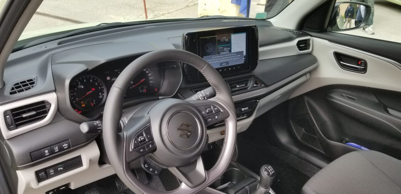 Chaque nouveau modèle n’échappe pas à une évolution sur le plan du style. La Swift 2024 ne fait exception à la règle tout en veillant à ne pas trop chambouler les fidèles de la marque japonaise. On ne va tout de même pas changer une équipe qui gagne. Les retouches sont discrètes mais bienvenues comme par exemple les nouveaux inserts dans les optiques avant et les feux arrière. Seule l’imposante calandre affirme le changement et rend l’aspect de l’auto plus dynamique. Style toujours, la Swift se décline avec de nouveaux coloris dont un jaune « Cool Yellow Metallic » surprenant au premier regard mais auquel on finit pas s’habituer. Pas sûr que Suzuki enregistre le plus des ventes de Swift avec cette teinte. En fait, c’est à l’intérieur, au volume identique à la précédente version, que les modifications sont les plus importantes. On aimera, ou pas, la planche de bord bi-ton marquée par un bourrelet côté passager, dont certains revêtements font encore un peu plastique bas de gamme. Mais on appréciera en revanche le grand écran et les commandes orientées vers le conducteur. Ce qui fait que l’ensemble reste de bonne facture et rend le séjour à bord agréable.