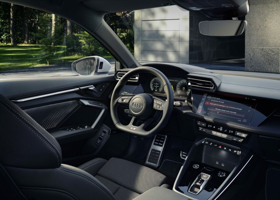 Lorsque le conducteur lève le pied de la pédale d’accélérateur, l’Audi A3 allstreet TFSI e* navigue soit avec les moteurs éteints, soit le moteur électrique récupère de l’énergie, en fonction de la situation de conduite. Les palettes au volant sont basées sur des modèles entièrement électriques et contrôlent la puissance de récupération en roue libre tandis que le niveau de conduite correspondant est ajusté en arrière-plan.