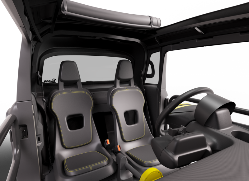 Ami Buggy se différencie d’Ami par son tempérament plus intrépide et aventureux, ciblant d’avantage le monde des loisirs. Ni portes, ni toit pour vivre ses loisirs au plus près de la nature et ressentir une agréable sensation de liberté. Les portes sont remplacées par des arceaux métalliques noirs montés sur charnières accentuant la sensation d’être en contact avec l’extérieur. Pour plus de caractère, l’Ami Buggy est dotée d’un becquet noir à l’arrière qui lui apporte une touche de sportivité. Les jantes en acier de 14’’ reçoivent une finition dorée et sont complétées par un centre de roue noir orné d’un chevron. Le logo quant à lui évolue pour arborer une teinte jaune.